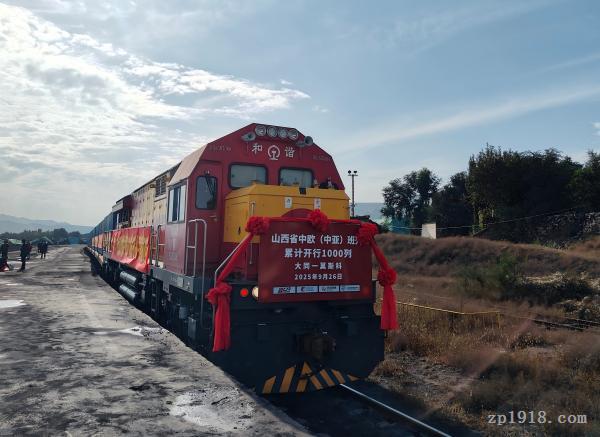 记者日前从国铁太原局获悉,9月26日,满载家电产品的中欧班列从山西大同铁路物流中心平旺站开往俄罗斯首都莫斯科。这是山西省累计开行的第1000列中欧(亚)班列,也是今年开行的第110列。