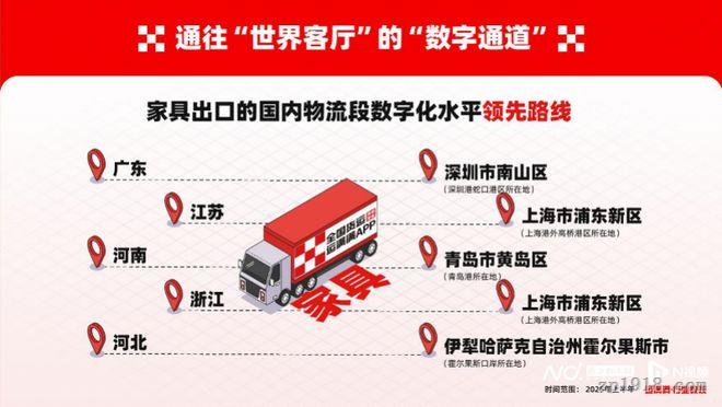 中国家具出口海外市场以美国、英国等国家为主,具有国际竞争优势。结合平台数据与市场公开报告,广东、江苏、河南、浙江和河北五省是国内上半年生产及出口家具规模领先的五省。借由数字运力平台,家具出口之路也有了“数字通道”,从产地到港口/口岸的运输效率大大提升。