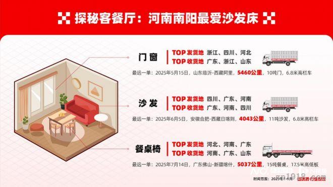 数字货运数据来了个中国家“底”大观。行业数观显示,中国建材与家具运输呈现出明显的季节性特征和地域性特色。在建材运输方面,全年运输高峰集中在3月到5月,这与中国建筑行业的施工周期密切相关。广东、山东、江西是发货量最大的三个省份,而广东、河北、山东则成为接收建材最多的地区。