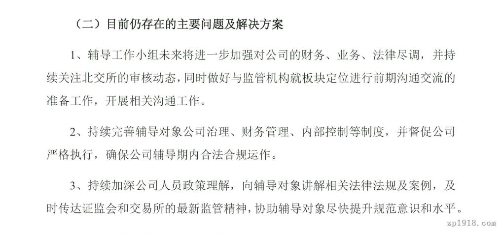 据报告,辅导工作小组未来将进一步加强对公司的财务、业务、法律尽调,并持续关注北交所的审核动态,同时做好与监管机构就板块定位进行前期沟通交流的准备工作,开展相关沟通工作。