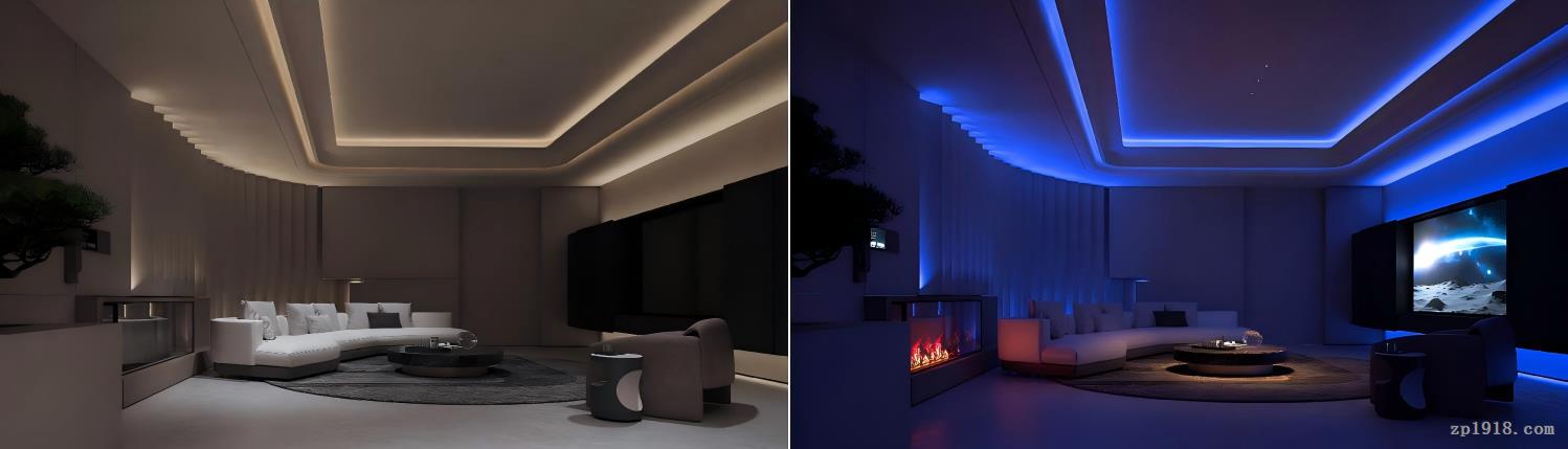 针对消费者对全屋智能场景体验的核心需求,5.0门店以科学动线设计为基础,打造客厅、卧室、茶室等多个实景空间,预设观影、音乐、阅读、冥想、就餐等多元化智能场景,实现“所见即所得”的沉浸式体验。消费者可在不同空间中亲身感受灯光、窗帘、影音、暖通等设备的协同联动,例如启动观影模式时,灯光自动渐暗、窗帘缓缓闭合、音响切换至环绕声场,毫秒级同步响应带来极致沉浸感,让消费者能够基于真实生活场景预判智能产品价值。