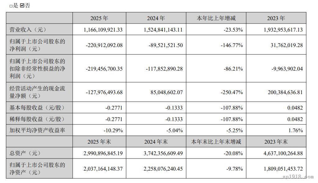 2025年,德尔未来实现营业收入11.66亿元,较上年同期下降23.53%。归属于上市公司股东的净利润为亏损2.21亿元,相较于上年同期幅度进一步扩大146.77%。扣除非经常性损益后的净利润为亏损2.19亿元,同比下降86.21%。