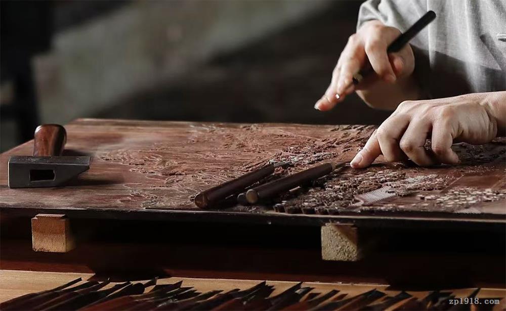 界画是中国传统绘画的一个门类,以中国传统建筑为主体,融人物、山水、花鸟为一体。然而,将二维的界画“移植”到三维的红木之上,绝非易事。“以往部分作品因透视关系把握不准,往往出现结构歪斜、层次混乱的问题。”蒋宝良坦言,为破解此难题,他创新性地引入现代透视原理,对传统画面进行科学修正,让亭台楼阁在木头上“立”得稳、“站”得直。