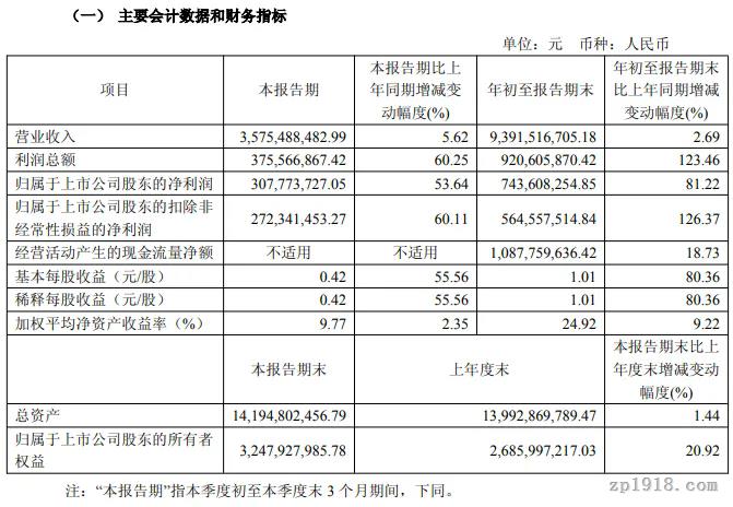 三棵树(603737)10月17日发布2025年第三季度报告,营业收入35.75亿元,同比增长5.62%,前三季度营业收入93.92亿元,同比增长2.69%;第三季度归属于上市公司股东的净利润3.08亿元,同比增长53.64%,前三季度净利润7.44亿元,同比增长81.22%。业绩变动主要是本期收入增长、毛利率提升及费用减少。三棵树同日公告前三季度利润分配方案,公司拟向全体股东每10股派发现金红利5元(含税)。