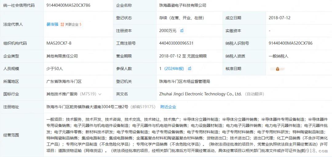 企查查最新信息显示,珠海晶瓷电子科技有限公司于11月12日完成投资人变更,珠海横琴晶途投资合伙企业(有限合伙)以1500万元认缴出资额持有75%股份,成为其控股股东。股权穿透显示,该投资合伙企业的最大出资人为广东蒙娜丽莎投资管理有限公司,持股比例达66.67%,而该公司正是上市公司蒙娜丽莎的全资子公司。这一股权变动标志着主营建筑陶瓷的蒙娜丽莎正式通过资本路径切入半导体领域。