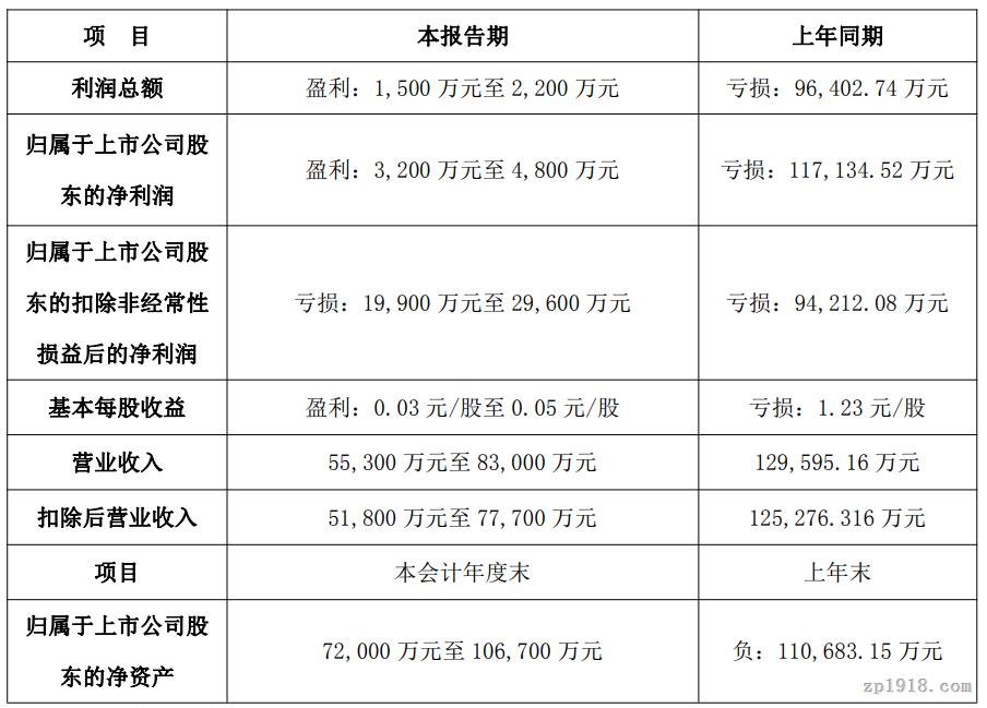 4、净利润仍存在一定金额亏损的主要原因系公司按照《企业会计准则》拟对可能发生减值损失的各类资产进行减值测试/评估,拟对存在减值迹象的各项资产计提减值准备,产生的资产减值损失将影响当期净利润,具体计提金额以正式披露的经审计数据为准。同时,公司发行的可转换债券按照《企业会计准则》计入当期的财务费用约8247万元,该金额影响当期净利润。