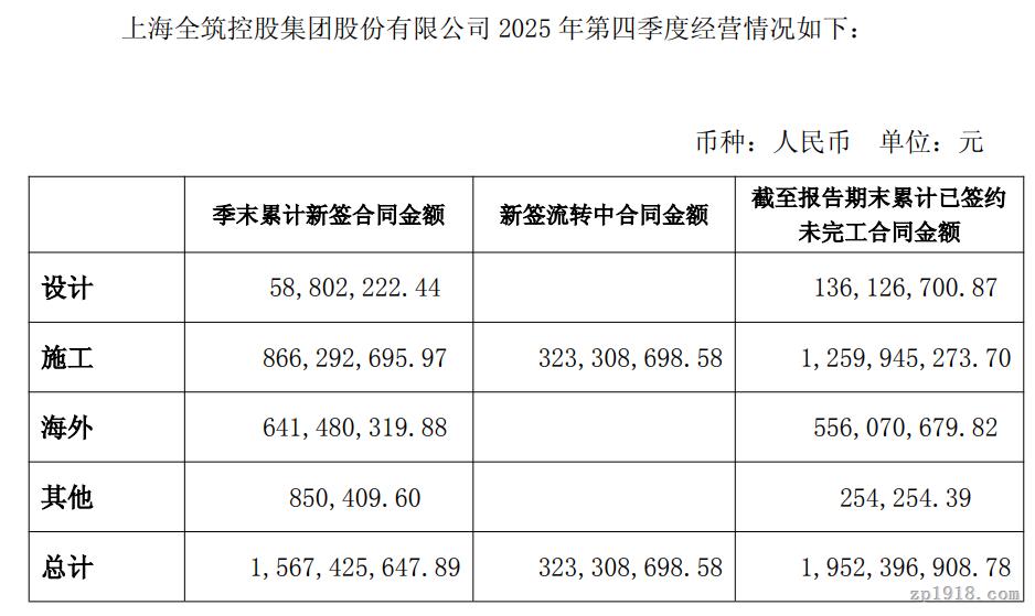 据了解,该公司主营业务包括公装施工、家装施工、设计业务、家具业务等,2025年第四季度末,就累计已签约未完工合同金额来看,设计业务约1.36亿元;施工业务约12.6亿元,海外业务约5.56亿元。
