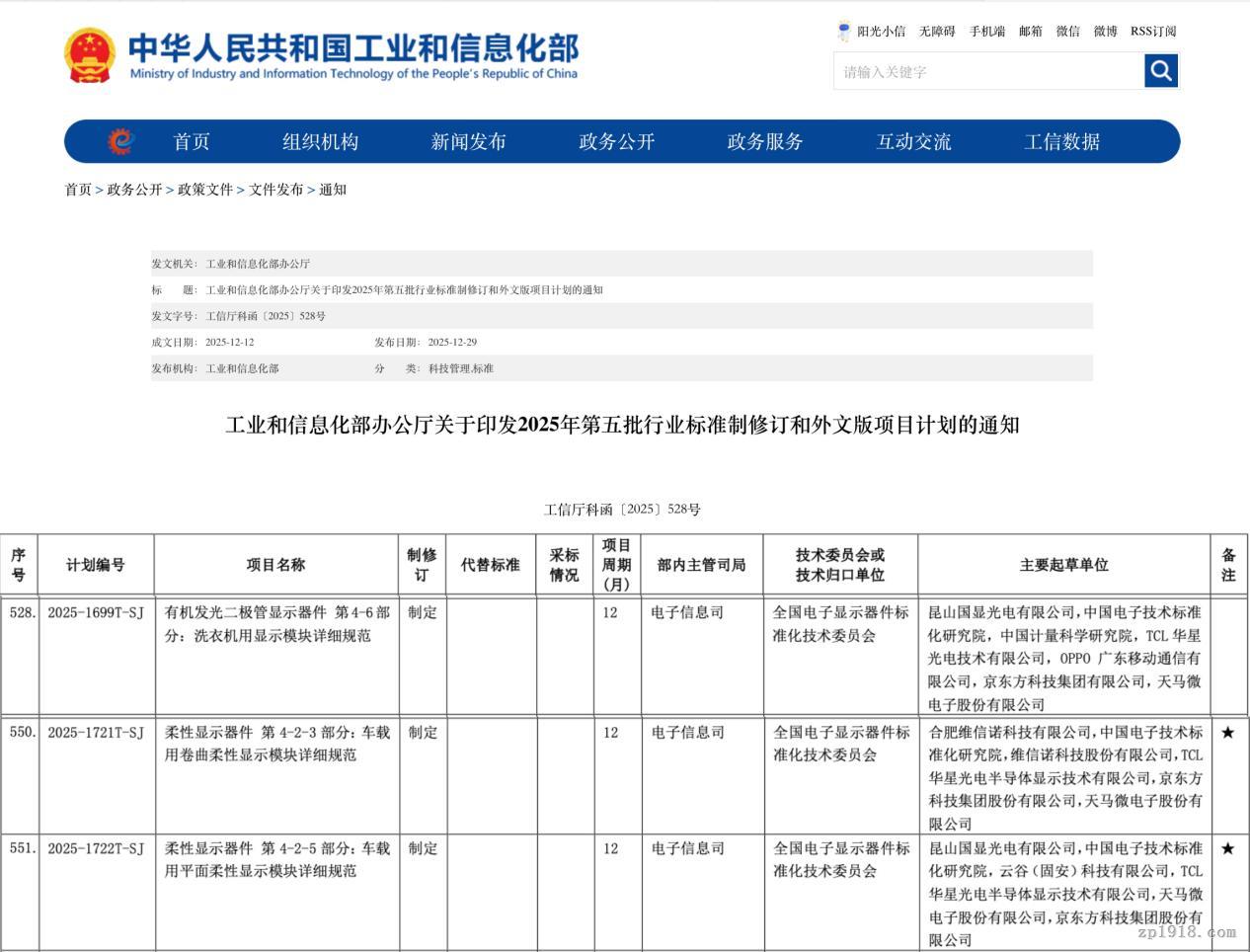 近日,工业和信息化部下发《关于印发2025年第五批行业标准修订和外文版项目计划的通知》,维信诺主导的《柔性显示器件 第4-2-3部分:车载用卷曲柔性显示模块详细规范》《柔性显示器件 第4-2-5部分:车载用平面柔性显示模块详细规范》《有机发光二极管显示器件 第4-6部分:洗衣机用显示模块详细规范》获批立项。此次立项是维信诺对新型显示产业发展趋势的前瞻布局与精准响应,为新型显示产业高质量发展注入强劲动力。