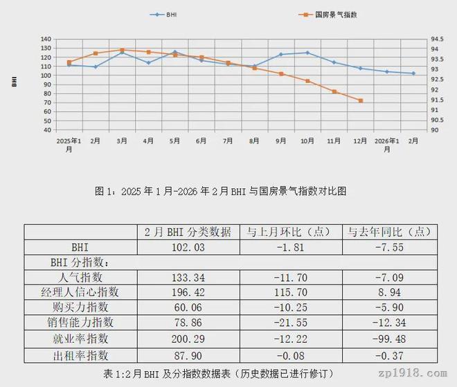 中国建材流通协会行业研究部就本期BHI数据解读:2026年2月,传统淡季叠加春节假期(2月中旬)等因素影响,BHI整体延续微降态势,符合季节性规律。