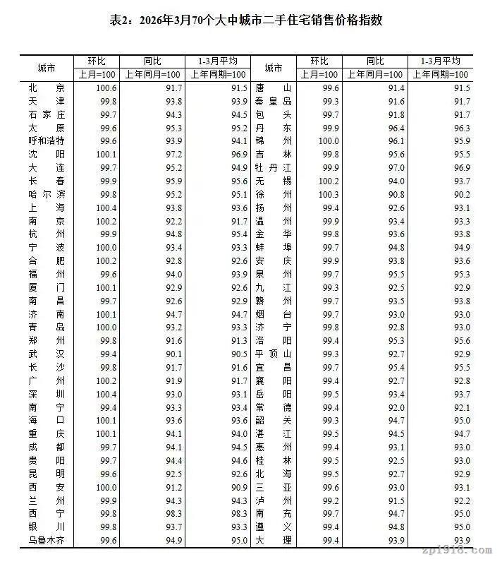 不止二手房,整个楼市都出现向好迹象。4月16日,国家统计局发布2026年3月份商品住宅销售价格变动情况。70个大中城市中,一线城市商品住宅销售价格环比上涨,二三线城市环比降幅收窄或相同。新建商品住宅和二手住宅销售价格环比上涨城市个数均比上月增加。